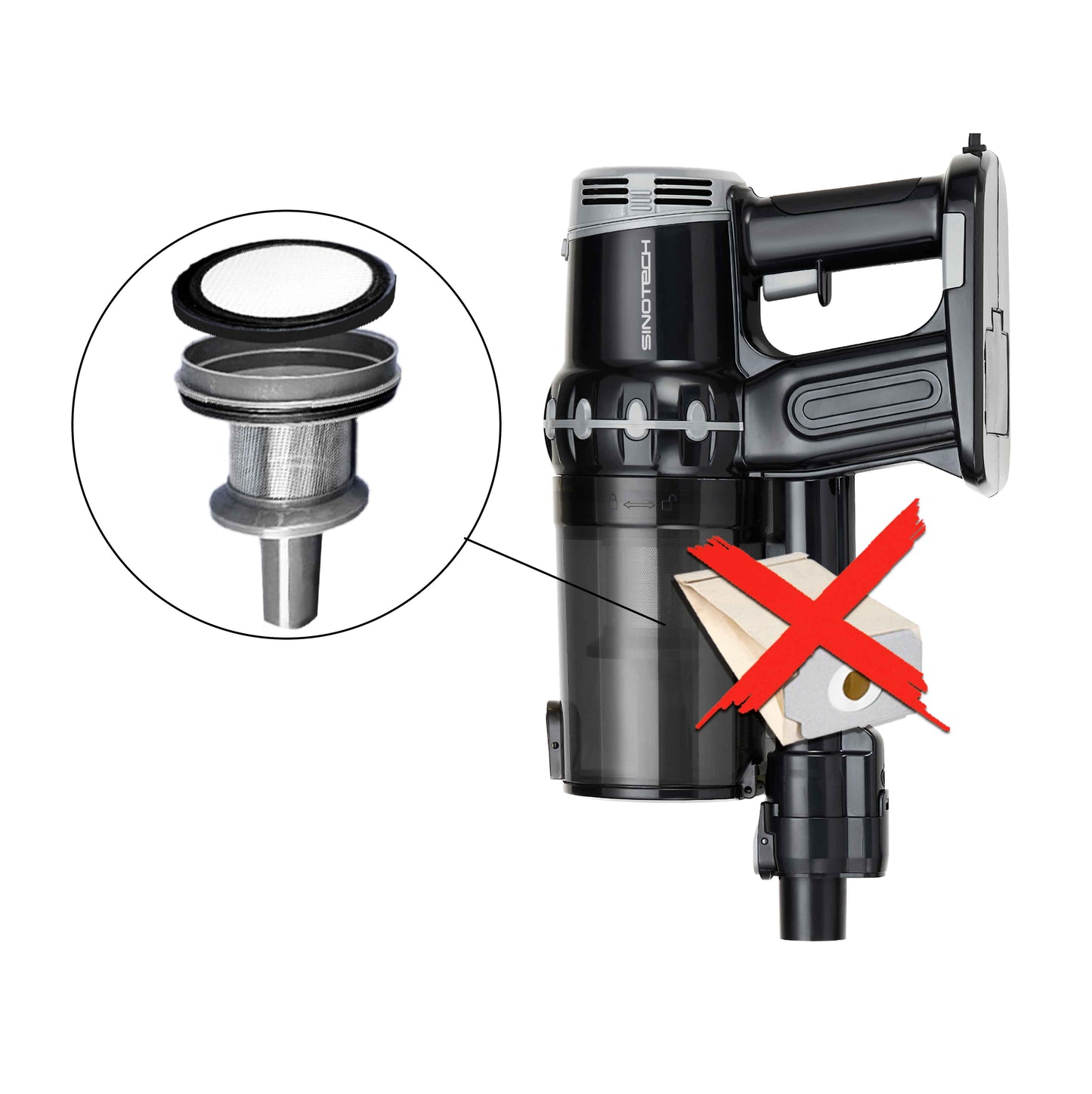 Aspirapolvere Ciclonico grazie ai due tubi in ABS è possibile regolare l'altezza a seconda delle esigienze. Ultra-leggero e senza sacchetto, il vano polvere easy-clean lo rende ancora più pratico.
